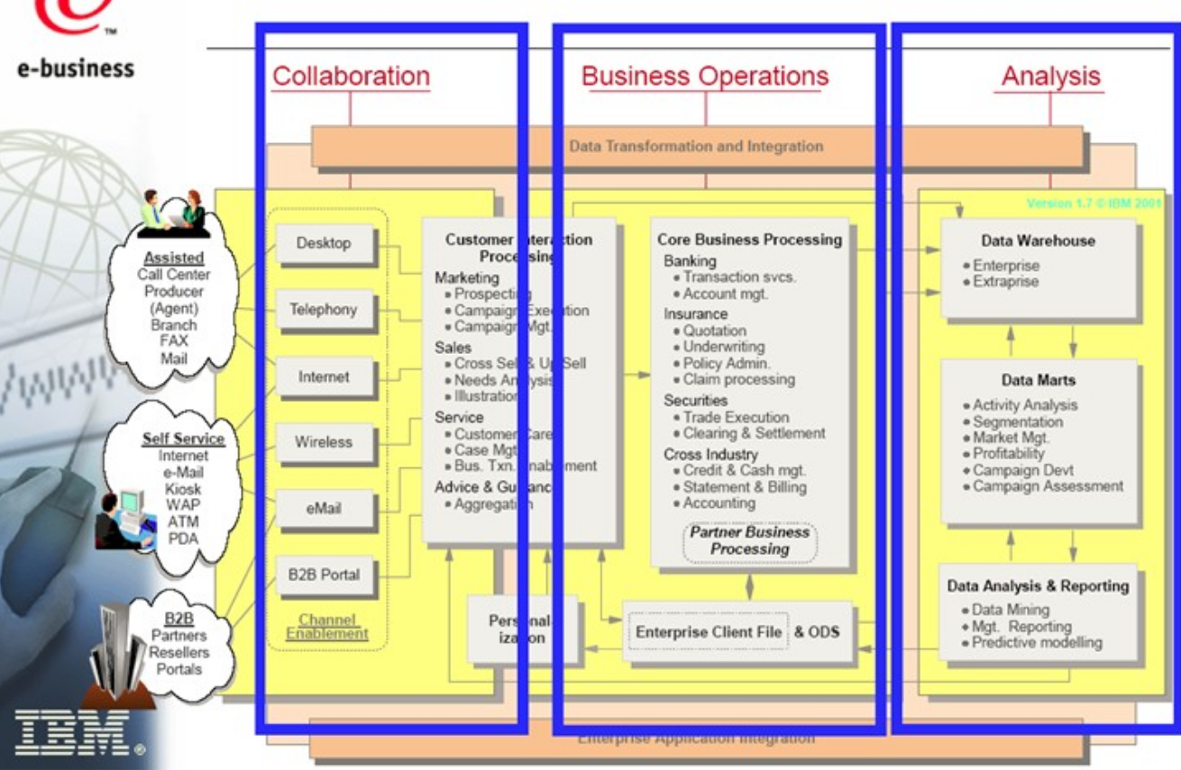 The below is a common CRM Architecture for Insurance defined by IBM.