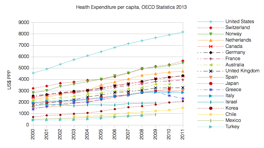 In Korea, Health Insurance is covered by government for everybody - meaning that is not only supported for normal people but also poor people as welfare, so Health Expenditure is relatively lower than other countries below.