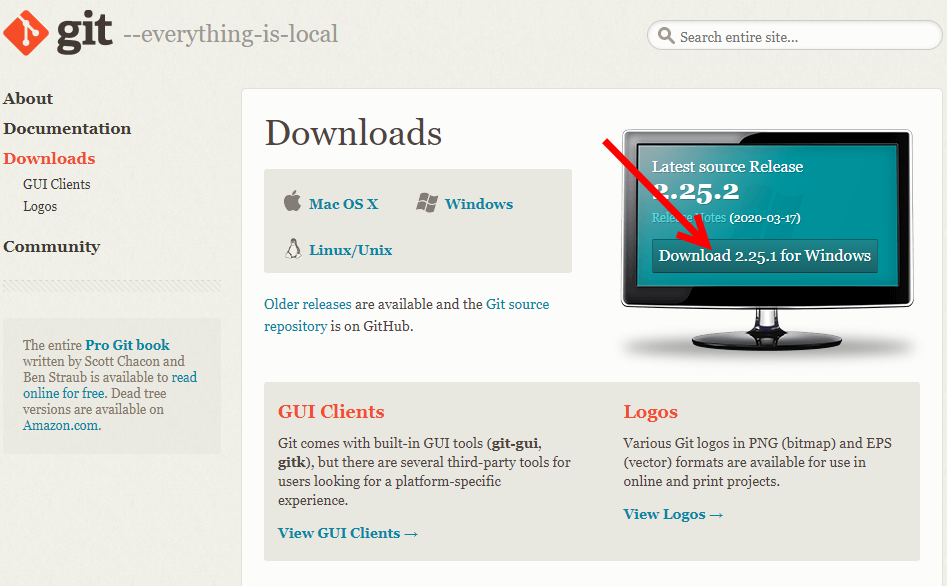 For git, you need to download a core component at https://git-scm.com/downloads